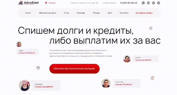 Выделяющийся среди конкурентов сайт юридической компании ООО «Адвоклад»